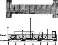 4gebäude das gebäude im raum. es ist ein körper mit komplexer mischung im inneren. genauso, wie das max-vorstadt-raster die freiheit gibt, einen königsplatz als besonderheit zu formulieren, braucht es eine strenge, einfache struktur, die sich modulieren lässt. gewählt ist ein gerichtetes bauch-rücken-system, alle zellen haben einen großbereich nach norden orientiert und einen kleinbereich nach süden. grundsätzlich richtet sich das system auf die alte pinakothek und deren freie stellung im stadtraster. funktional bedeutet das system, daß es große nutz- und ausstellungsräume gibt, dagegen sind sämtliche nebenfunktionen, die erschliessung und auch alle kleineren sonderfunktionen in die kleineren räume innerhalb der rücken gelegt. die stuktur ermöglicht eine orientierung im gebäude, aber auch die schnelle und einfache umnutzung bei einer änderung. somit ist das gewählte system nur als ein mindestmaß an hülle zu verstehen. welches die gewünschten funktionen aufnimmt. die rein-additive struktur alleine reicht jedoch nicht aus, ein interessantes und in diesem sinne auch funktionsgerechtes gebäude zu schaffen. daher ist durch eine senkrecht zur bauch-rücken-organisation gelegte nutzungs- und raumorganisation die lockerung des strengen systems eingeleitet. <<